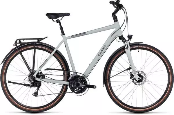Das voll ausgestattete und auf höchsten Fahrkomfort ausgelegte Touring ONE bietet alles, was ein gutes Touring-Bike ausmacht – Horizonterweiterung inklusive. Selbst steile Anstiege lassen sich dank der einfach zu bedienenden Shimano 3×8-Schaltung enstpannt angehen. Dabei wechselst du den Gang ganz geschmeidig per Fingerzeig vom Lenker aus. Die leistungsstarken Scheibenbremsen verzögern das Bike bei Nässe um einiges besser als normale Bremsen – und machen das Bergabfahren damit viel sicherer. Außerdem hat Cube für top Fahrkomfort auf holprigem Untergrund eine Federgabel und eine gefederte Sattelstütze verbaut. Ebenso mit dabei: extralange Schutzbleche, ein formschön integrierter Gepäckträger, ein Seitenständer und eine dynamogespeiste Lichtanlage. Fazit: Ob kurze Stadtrunde oder längerer Ausflug ins Grüne – das Touring ONE steht bereit! Das Herzstück unserer Touring Serie ist der hochwertige, leichte Rahmen aus doppelt konifizierten Aluminiumrohren. Dabei sorgt unsere Efficient Comfort Geometry für Effizienz, Fahrkomfort und ein agiles, intuitives Handling, was sich besonders an langen Tagen im Sattel bezahlt macht. Die Version mit tiefem Einstieg sieht nicht nur gut aus, sondern erleichtert auch das Auf- und Absteigen. Zusätzlich gibt es das Modell als sportlichen Trapezrahmen sowie als klassischen Herren-Diamantrahmen in fünf verschiedenen Größen. Da findest du mit mit Sicherheit die optimale Passform für dich und deine Ansprüche! Alle Rahmenformen sind mit einem eleganten Gepäckträger und ins Unterrohr verlegten Zügen ausgerüstet, damit die Schaltung dauerhaft präzise arbeitet und ohne großen Wartungsaufwand auskommt.
