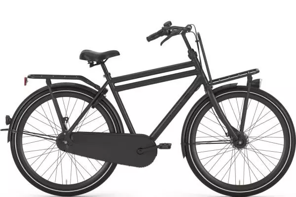 Ein Lastenrad in seiner reinsten Form: ein kräftiger Rohrrahmen mit schmalen Gepäckträgern vorn und hinten. So lässt sich sehr viel mitnehmen, dennoch fährt und lenkt sich das Rad angenehm leicht. Der Grund liegt in der Kombination aus leichten Materialien und breiten Reifen mit einer bequemen Sitzposition.