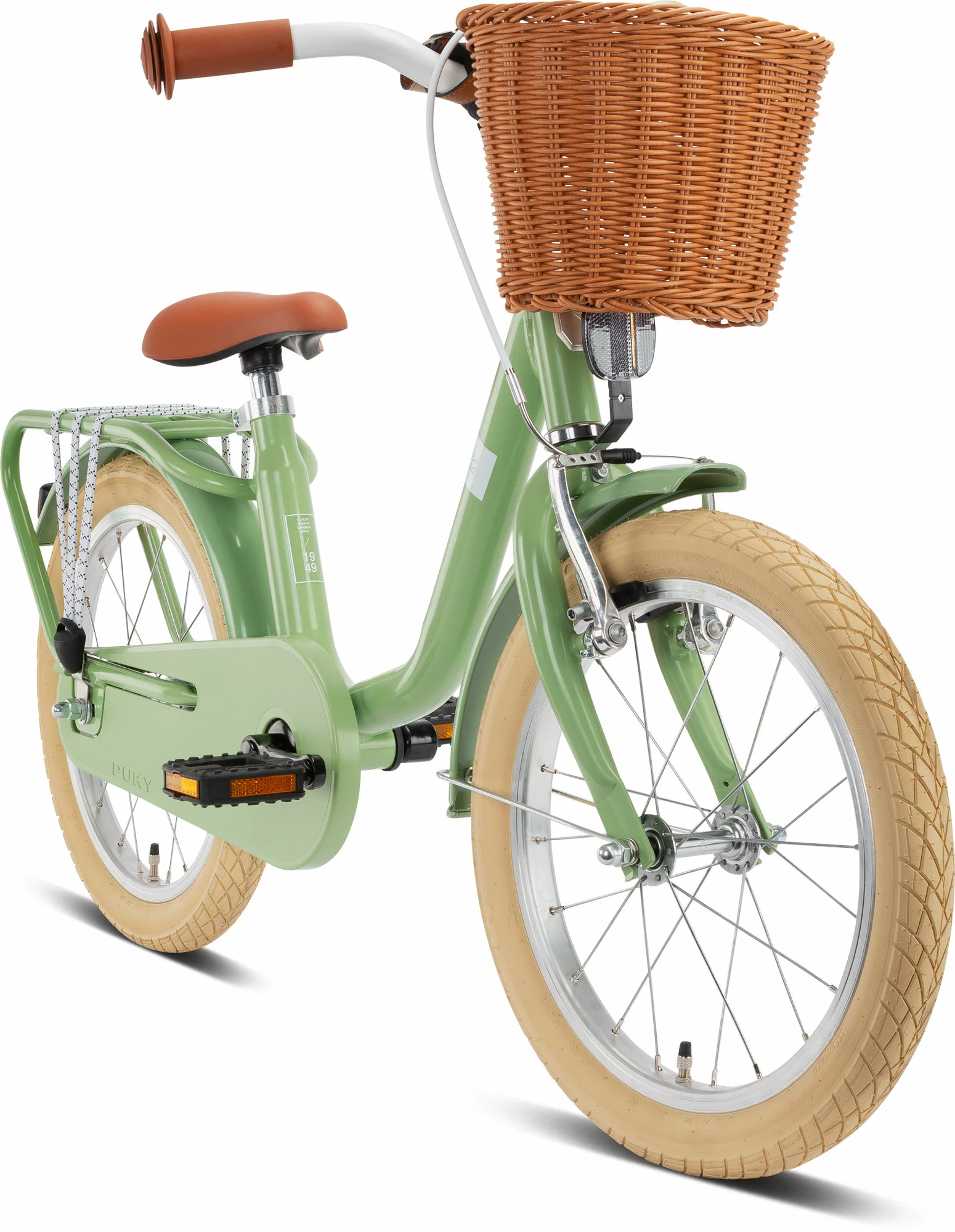 PUKY STEEL CLASSIC 16 steht für einen trendigen Retrolook auf dem neusten, technischen Stand. Coole Features, wie der geflochtene Lenkerkorb aus flexiblem Kunststoff sowie der Gepäckträger mit Spanngurt machen das PUKY STEEL Classic zum absoluten Hingucker. Nicht nur mit einem neuem Erscheinungsbild kann das Retrobike glänzen, sondern auch die Bremsanlage wurde von einer Cantilever– durch eine zeitgemäße V-Brake ersetzt. Der niedrige Rahmeneinstieg des STEEL Classic ermöglicht Kindern ab 4 Jahren einen einfachen Auf- und Abstieg und kugelgelagerte Lenkung, Räder und Pedale gewährleisten leichtgängige Richtungswechsel. Der Seitenständer, das Reflektoren-Set und eine farblich abgestimmte Glocke rundet die Serienausstattung perfekt ab und lässt kaum Wünsche offen. Alle PUKY STEEL Classic Modelle werden in Deutschland gefertigt und verfügen über eine stoßfeste Pulverlackierung, die das Kinderfahrrad langlebig und unempfindlich macht. Das Kinderfahrrad PUKY STEEL Classic 16 ist in den Farben retro-green und retro-rose bestellbar.