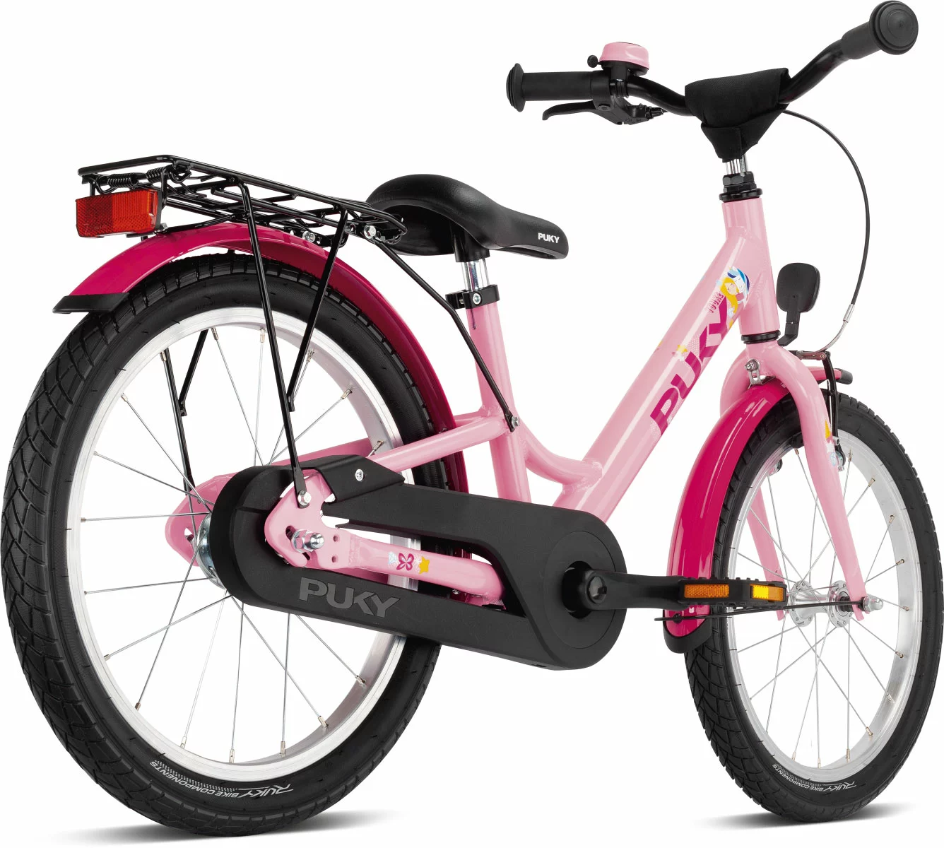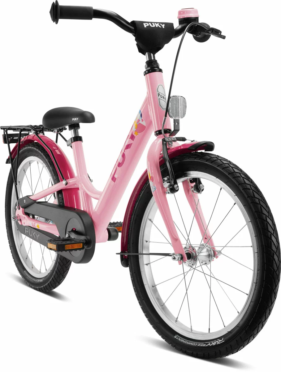PUKY YOUKE 18 begeistert Fahranfänger und Fortgeschrittene Piloten gleichermaßen. Vollausgestattet mit einem serienmäßigen Gepäckträger, einem kindgerechten V-Brake Bremssystem dem PUKY SAFETY SET lässt das PUKY YOUKE 18 keine Wünsche offen. Ein tiefer Rahmeneinstieg und die niedrige Überstandshöhe des PUKY YOUKE 18 sorgen für optimales Auf- und Absteigen des Kindes. Zudem wurden die Lenkerbreiten sowie das Übersetzungsverhältnis am YOUKE optimiert und neu abgestimmt. Leichte Aluminiumkomponenten wie der Rahmen, Lenker und die Kurbeln gewährleisten ein perfektes Gewichtsverhältnis (nur 8,7 kg) zwischen dem Kind und seinem PUKY YOUKE 18. In siebzig Jahren PUKY haben Millionen Eltern und Kinder auf einem PUKY Fahrrad fahren gelernt. Nicht umsonst steht PUKY als Synonym für das Kinderfahrrad schlechthin. Mit dem neuen PUKY YOUKE setzen wir neue Maßstäbe. Die 100% Lerngarantie! Erhältlich ist das PUKY YOUKE 18 in den Farben ultramarinblau, rosa und fresh green.