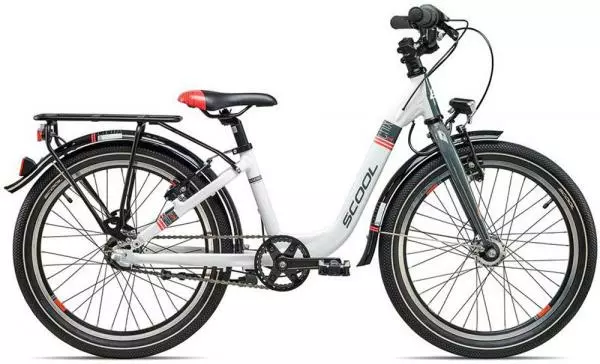 S`COOLs leichtes Schulrad mit voller Straßenausstattung und durchdachten Komponenten. Bei der Auswahl von Gabel, Vorbau, Lenker und Kurbel wurden deshalb Anbauteile aus Aluminium gewählt.