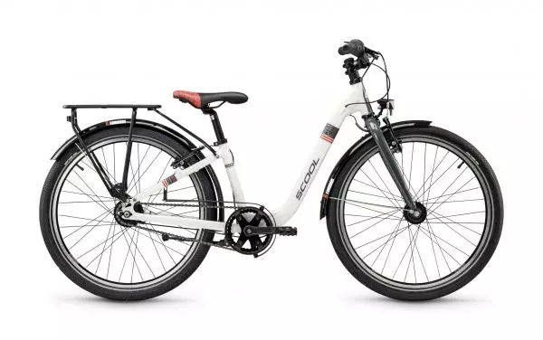 S’Cools leichtes Schulrad mit voller Straßenausstattung und durchdachten Komponenten. Bei der Auswahl von Gabel, Vorbau, Lenker und Kurbel wurden deshalb Anbauteile aus Aluminium gewählt.