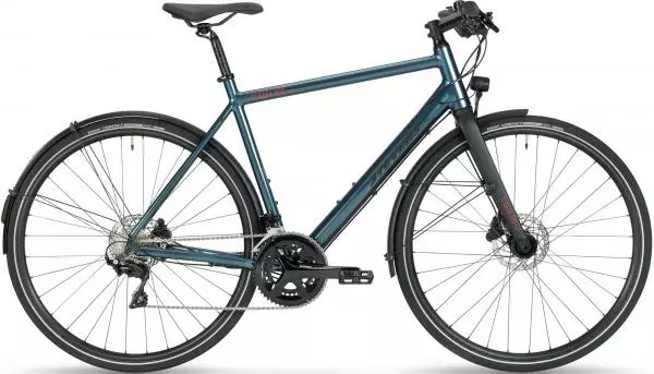 Das neue STEVENS Strada 800 Tour ist ein waschechter „Wolf im Schafspelz“ auf zwei Rädern: Unter seinem „Schafspelz“ – einer hochwertigen Ganzjahres-Ausstattung vom Nabendynamo über vollwertige Schutzbleche bis hin zum edel-hellen Supernova-Scheinwerfer – steckt ein Urban-Racer der Extraklasse. Sein steifer Rahmen und die S-Lite Aluminium-Gabel bestechen im Zusammenspiel durch wendig-präzises Handling. Der Shimano 105 Compact-Antrieb setzt Pedalkräfte in stuürmischen Vorwärtsdrang um – adäquat im Zaum gehalten durch hydraulische Flatmount-Scheibenbremsen.
